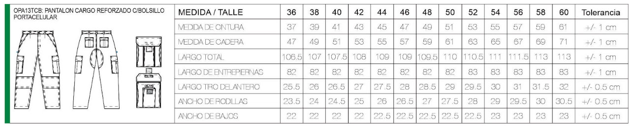 1 -Pantalón Cargo con bolsillos con portacelular confeccionado en gabardina 8oz., con tratamiento pre-encogido.